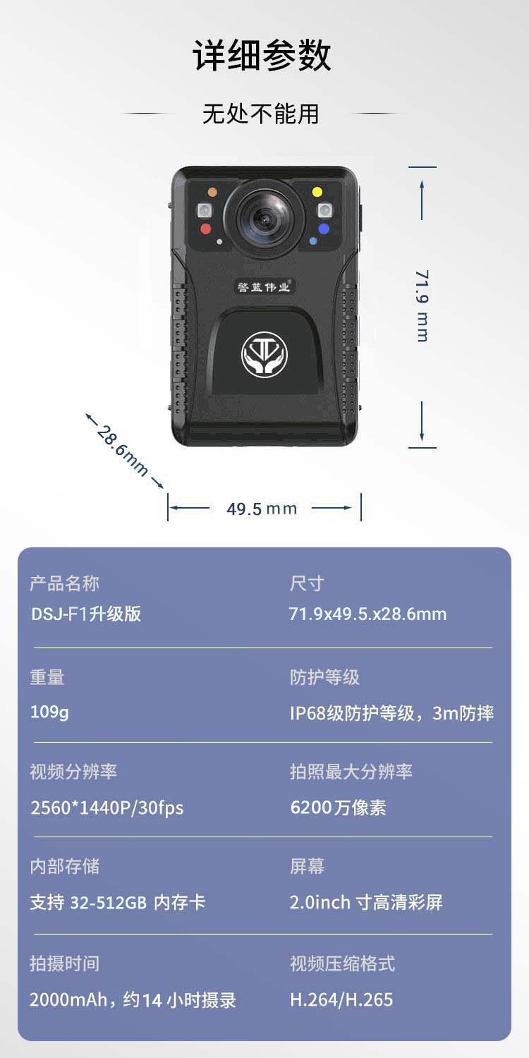 執(zhí)法記錄儀經(jīng)過嚴(yán)格的高低溫測(cè)試,可在-30°至+55°環(huán)境中正常使用。