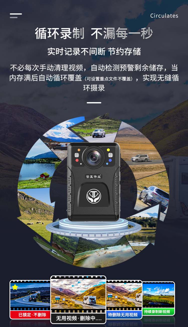 本產(chǎn)品是主要針對(duì)執(zhí)法部門的特殊使用需求,研發(fā)生產(chǎn)的新一代最小最輕便全天候執(zhí)法記錄設(shè)備,本產(chǎn)品能夠?qū)?zhí)法現(xiàn)場(chǎng)進(jìn)行動(dòng)態(tài)、靜態(tài)的音視頻記錄。特有的紅藍(lán)警示燈、遠(yuǎn)距離紅外光源和白光燈設(shè)計(jì),保證了在夜間全黑環(huán)境下的執(zhí)法記錄效果。是執(zhí)法部門實(shí)現(xiàn)信息化、規(guī)范化的有力工具。