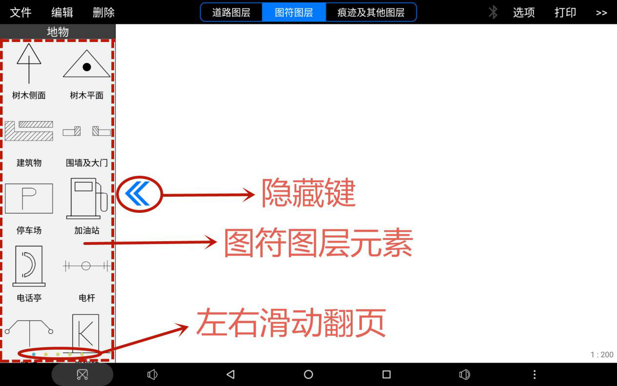 可分別鎖定道路圖層、圖符圖層、痕跡及其它圖層。避免使用者在繪制過程中,出現(xiàn)操作失誤。